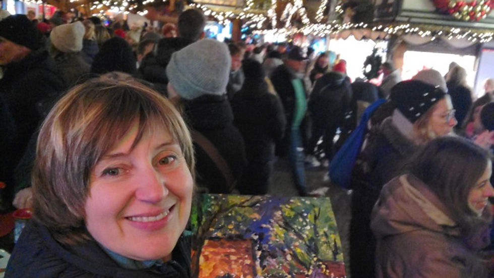 Für mich sind Weihnachtsmärkte nicht nur Orte, die man besucht. Sie sind Orte, die man malt und später im Atelier noch einmal erlebt. Jede Skizze wird zu einer Erinnerung: das Lachen, das Klirren der Becher und das Leuchten der Laternen in der Nacht.